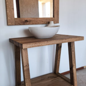 Αναβαθμίστε το μπάνιο σας με ένα χειροποίητο έπιπλο μπάνιου από μασίφ ξύλο δρυός, φτιαγμένο σε εντυπωσιακό ρουστίκ–παλαιωμένο ύφος. Η φυσική υφή της δρυός, με τα έντονα νερά και τα μοναδικά σημάδια του ξύλου, δίνει στο χώρο ξεχωριστή αισθητική και ζεστασιά.