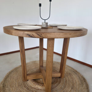 Αναδείξτε τον χώρο σας με αυτό το κομψό και στιβαρό στρογγυλό τραπέζι τραπεζαρίας από μασίφ ξύλο δρυ. Ο διαχρονικός σχεδιασμός του συνδυάζει τη φυσική ομορφιά του ξύλου με τη σύγχρονη αισθητική, προσφέροντας ένα έπιπλο υψηλής αντοχής και αισθητικής αξίας.