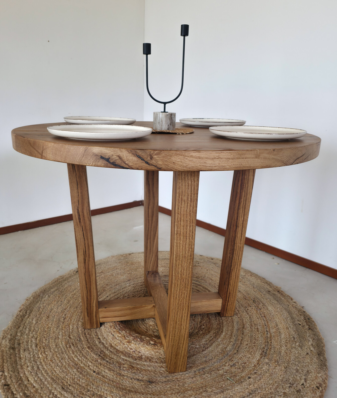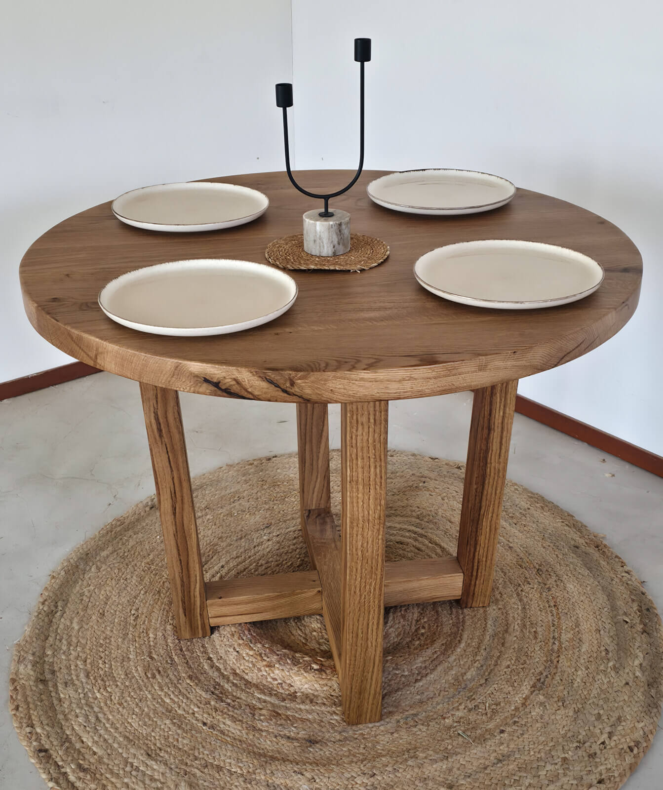 Το FREYA είναι ένα αυθεντικό τραπέζι τραπεζαρίας από μασίφ ξύλο δρυός, με παλαιωμένη υφή και έντονο φυσικό χαρακτήρα, σχεδιασμένο για στιγμές που έχουν αξία και διάρκεια.