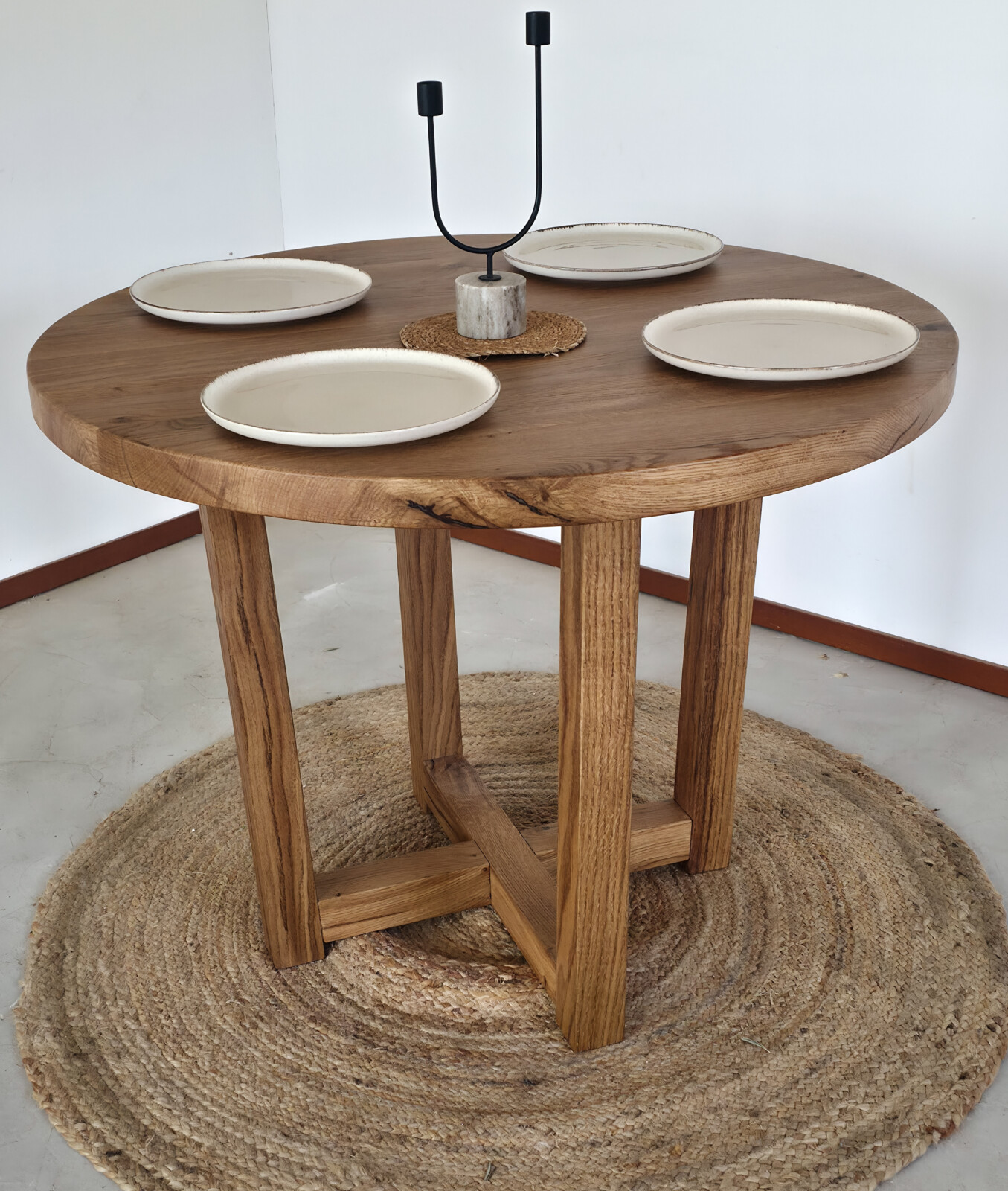 Κατασκευασμένο εξ ολοκλήρου από μασίφ ξύλο δρυός, με ελαφρώς παλαιωμένη επιφάνεια, διατηρεί όλα τα φυσικά χαρακτηριστικά του ξύλου: νερά, ρόζους, ανεπαίσθητες ατέλειες που κάνουν κάθε τραπέζι μοναδικό. Κανένα FREYA δεν είναι ίδιο με άλλο — γιατί η φύση δεν επαναλαμβάνεται.